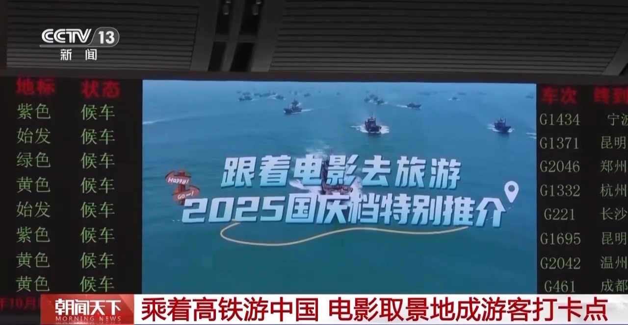 據(jù)了解,為持續(xù)推動(dòng)“電影+”業(yè)態(tài)創(chuàng)新,國(guó)慶期間,在全國(guó)3000多個(gè)鐵路客運(yùn)車(chē)站、4200多組動(dòng)車(chē)組列車(chē)的車(chē)廂電視上,集中播放《跟著電影去旅游》等影旅主題推介視頻,不僅展示熱門(mén)電影取景地,還聯(lián)動(dòng)多條鐵路旅游專(zhuān)線(xiàn)提供出行指引,邀請(qǐng)旅客體驗(yàn)“鐵路+電影”的出行新方式。