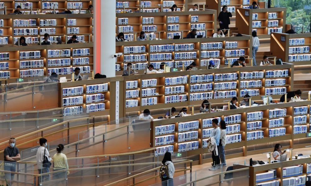 10月5日,市民在北京城市圖書館內(nèi)讀書。新華社記者 李欣 攝