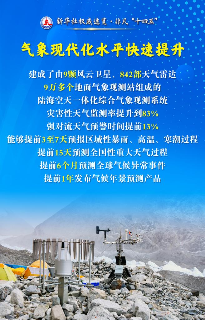 氣象事業(yè)是科技型、基礎性、先導性社會公益事業(yè)。10月11日,中國氣象局局長陳振林在國新辦舉行的“高質量完成‘十四五’規(guī)劃”發(fā)布會上說,氣象部門加快推進氣象科技能力現代化和社會服務現代化,努力構建科技領先、監(jiān)測精密、預報精準、服務精細、人民滿意的現代氣象體系。跟隨海報,一起了解。