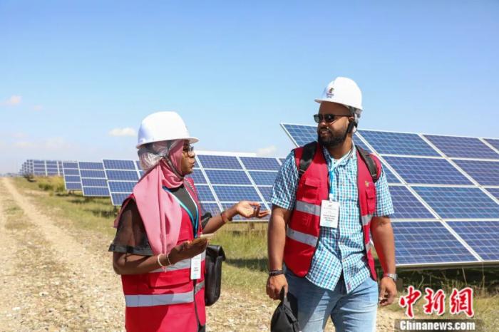 2025年9月12日,第九屆中非青年大聯(lián)歡代表團(tuán)和非洲記者團(tuán)一行來到青海省一光伏產(chǎn)業(yè)園區(qū),實地了解青海清潔能源發(fā)展。中新社記者 馬銘言 攝