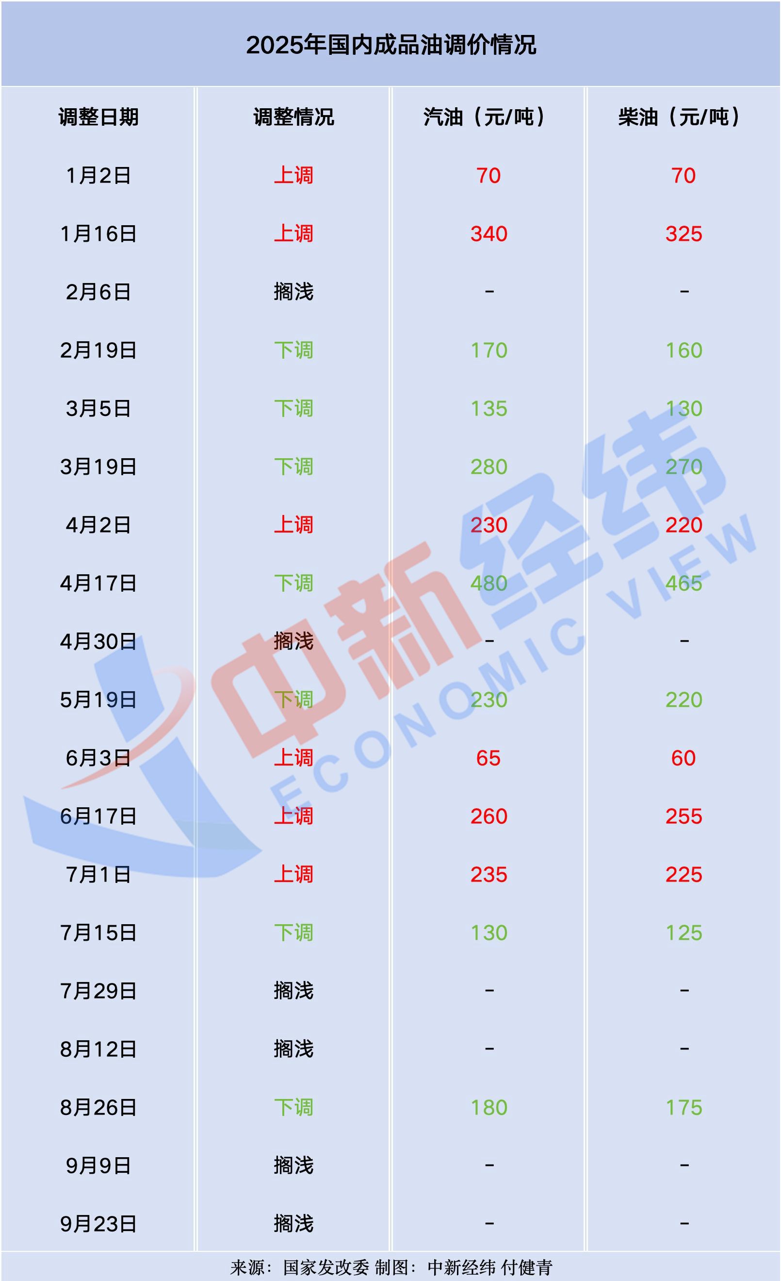 中新經緯梳理發(fā)現(xiàn),國內油價已經歷十九輪調整,呈現(xiàn)“六漲七跌六擱淺”的格局,國內汽、柴油價格較去年底分別下跌405元/噸和390元/噸。