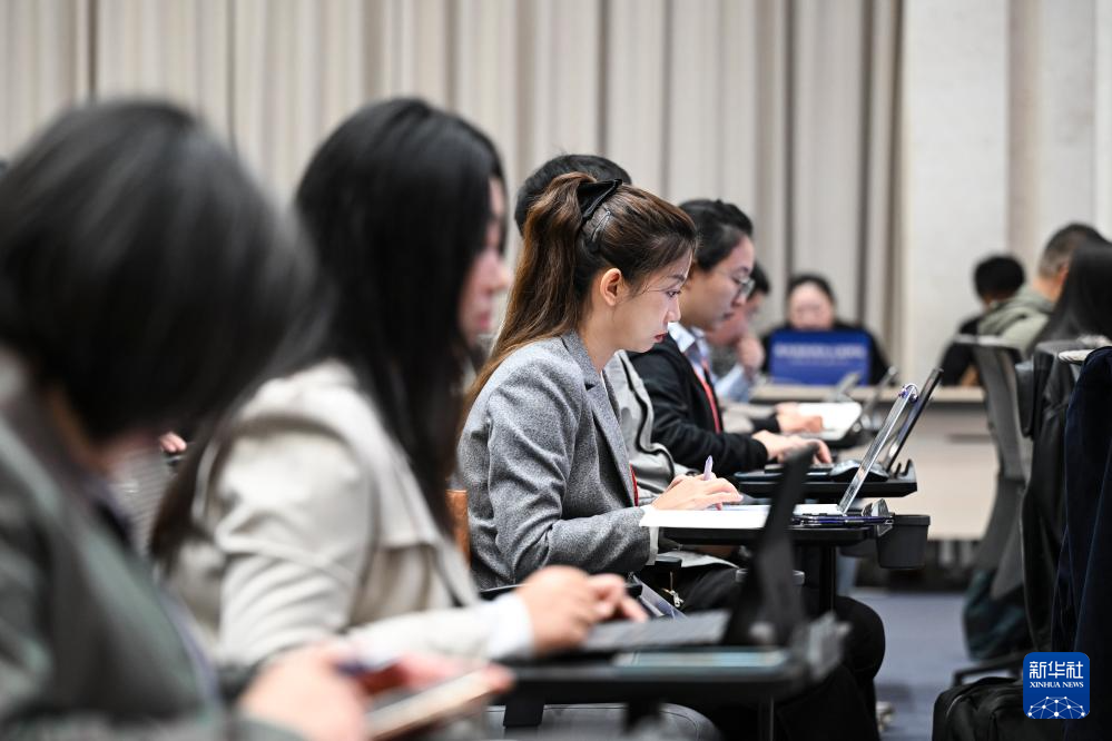 10月14日,國務(wù)院新聞辦公室在北京舉行“高質(zhì)量完成‘十四五’規(guī)劃”系列主題新聞發(fā)布會(huì),國家發(fā)展改革委黨組成員、國家糧食和物資儲(chǔ)備局局長劉煥鑫,國家糧食和物資儲(chǔ)備局副局長錢毅、副局長秦玉云介紹“十四五”時(shí)期糧食流通改革發(fā)展成效,并答記者問。這是記者在現(xiàn)場工作。新華社記者 陳曄華 攝