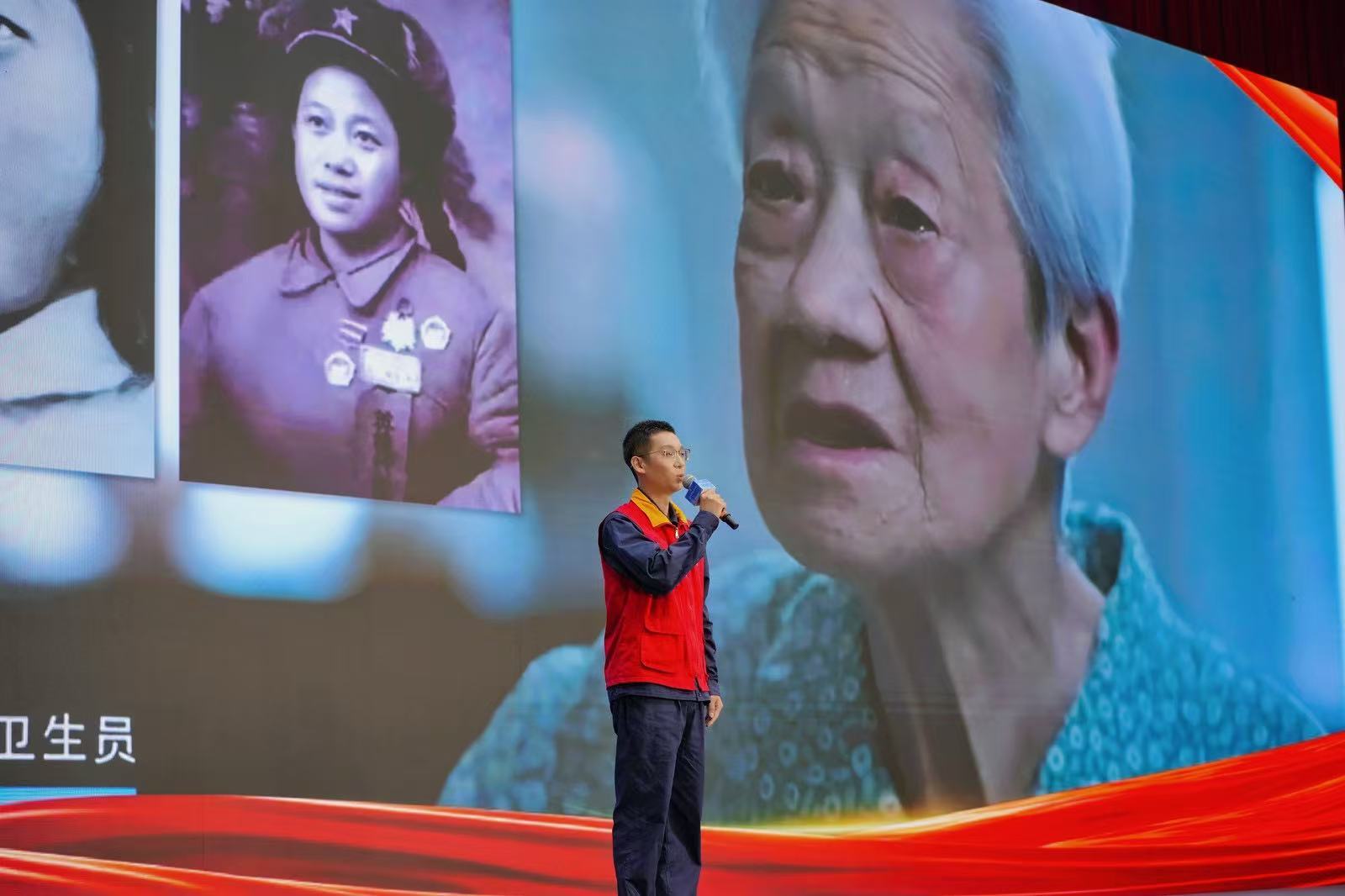 “上甘嶺坑道里的烽火雖已遠去,但英雄的故事始終在照亮我們的初心?!眹译娋W(wǎng)孝感供電公司的紅領志愿宣講員劉航,以奶奶王清珍——電影《上甘嶺》中“王蘭”原型的革命經(jīng)歷,為現(xiàn)場點亮了第一束“信仰之光”。