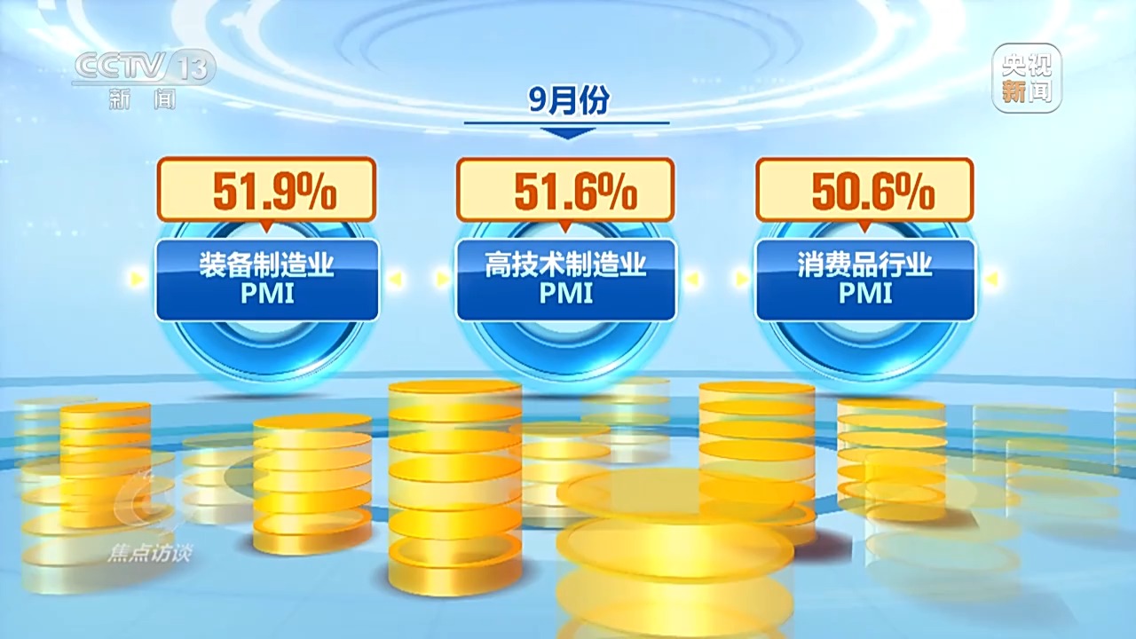工業(yè)企業(yè)利潤(rùn)的明顯改善釋放的是市場(chǎng)需求在增加、價(jià)格在回升等積極信號(hào)。類似的積極信號(hào),我們?cè)谥圃鞓I(yè)采購(gòu)經(jīng)理指數(shù)(PMI)中也能看到。9月份,裝備制造業(yè)、高技術(shù)制造業(yè)和消費(fèi)品行業(yè)PMI分別為51.9%、51.6%和50.6%,均位于擴(kuò)張區(qū)間。生產(chǎn)經(jīng)營(yíng)活動(dòng)預(yù)期指數(shù)為54.1%,連續(xù)三個(gè)月回升。