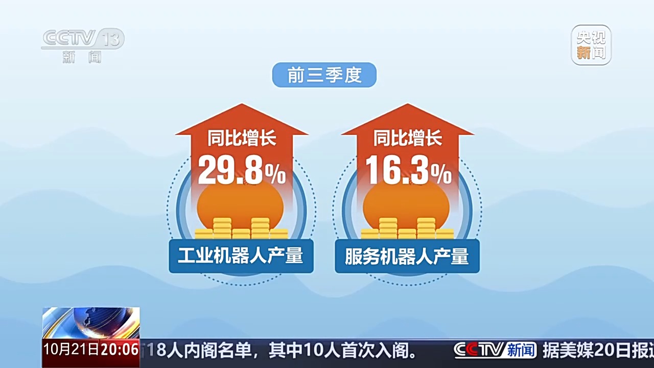 第三季度,我國規(guī)模以上高技術(shù)制造業(yè)增加值同比增速明顯快于全部工業(yè);信息傳輸、軟件和信息技術(shù)服務(wù)業(yè)增加值增長11.7%,比上年同期加快1.7個百分點(diǎn)。前三季度,規(guī)模以上高技術(shù)制造業(yè)增加值同比增長9.6%;工業(yè)機(jī)器人、服務(wù)機(jī)器人等產(chǎn)品產(chǎn)量分別增長29.8%、16.3%。