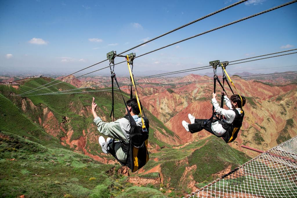 首次體驗(yàn)低空飛行的游客劉大偉贊嘆:“從空中俯瞰,連綿的彩丘和丹霞地貌猶如大地潑墨而成的瑰麗畫卷,雄渾而又夢(mèng)幻。”