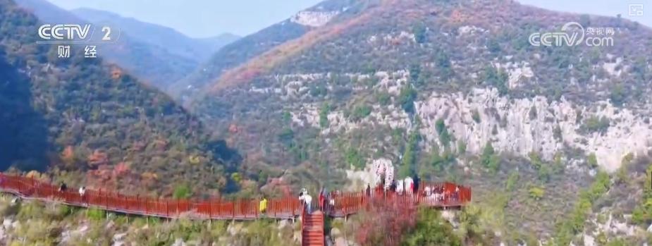 這里新落成的五彩步道全長(zhǎng)1300米,沿山脊蜿蜒鋪展,如一條絢爛彩帶鑲嵌于山間,每百米便有一處景致,步移景異。游客既能賞紅葉爛漫、覽太行雄姿,亦可于登高望遠(yuǎn)處邂逅一場(chǎng)秋日視覺(jué)盛宴。