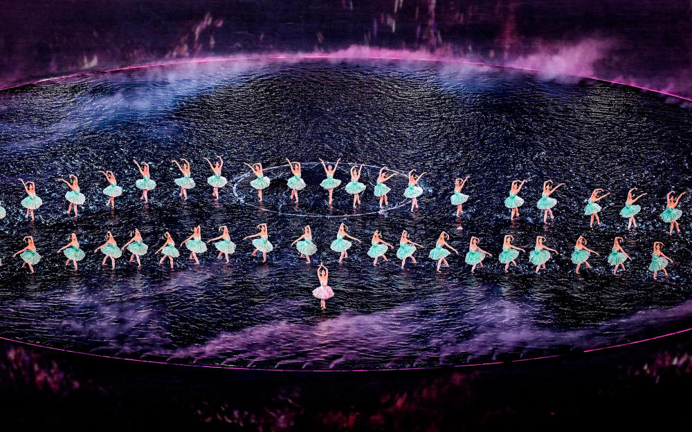 郎昆介紹,開幕式在空間敘事、藝術(shù)表達等方面都體現(xiàn)了三地文化交融。主舞臺直觀呈現(xiàn)“同心圓”造型,環(huán)形舞臺周邊是廣闊的水面,運用前沿的“虛實結(jié)合”技術(shù),讓珠江、維多利亞港、伶仃洋的水波在場地中交匯奔流。這不僅是地理水系的相連,更是三地同源共流的文化血脈與手足親情的象征。