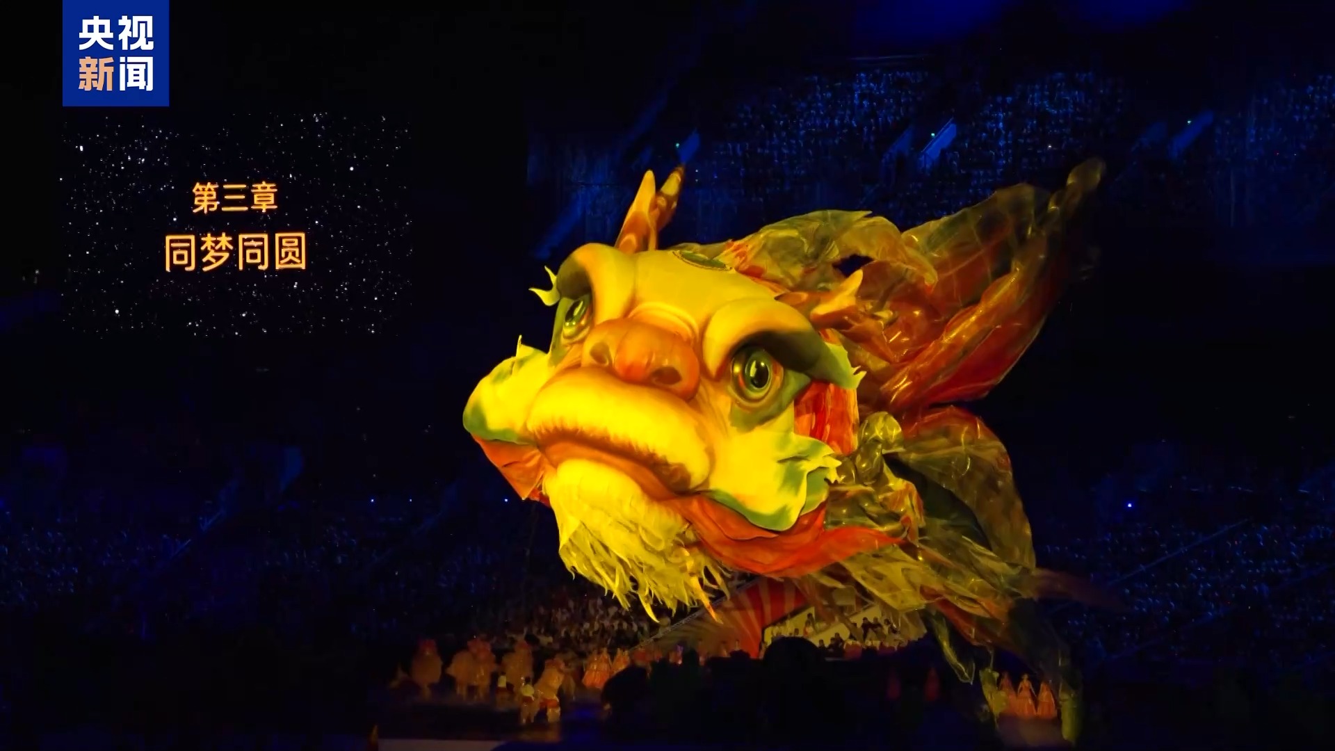 十五運(yùn)會(huì)開幕式上,操控這條刷爆全網(wǎng)的巨獸鰲魚的,不是無人機(jī),也不是塔吊,更不是全息投影,它是以竹子為骨架,配上氣囊、彩繪,再用傳統(tǒng)風(fēng)箏線操控,回歸千年非遺本真。鰲魚的全身128片變色鱗片流光溢彩,龍須隨風(fēng)自然飄灑,飄逸靈動(dòng),如夢(mèng)似幻。