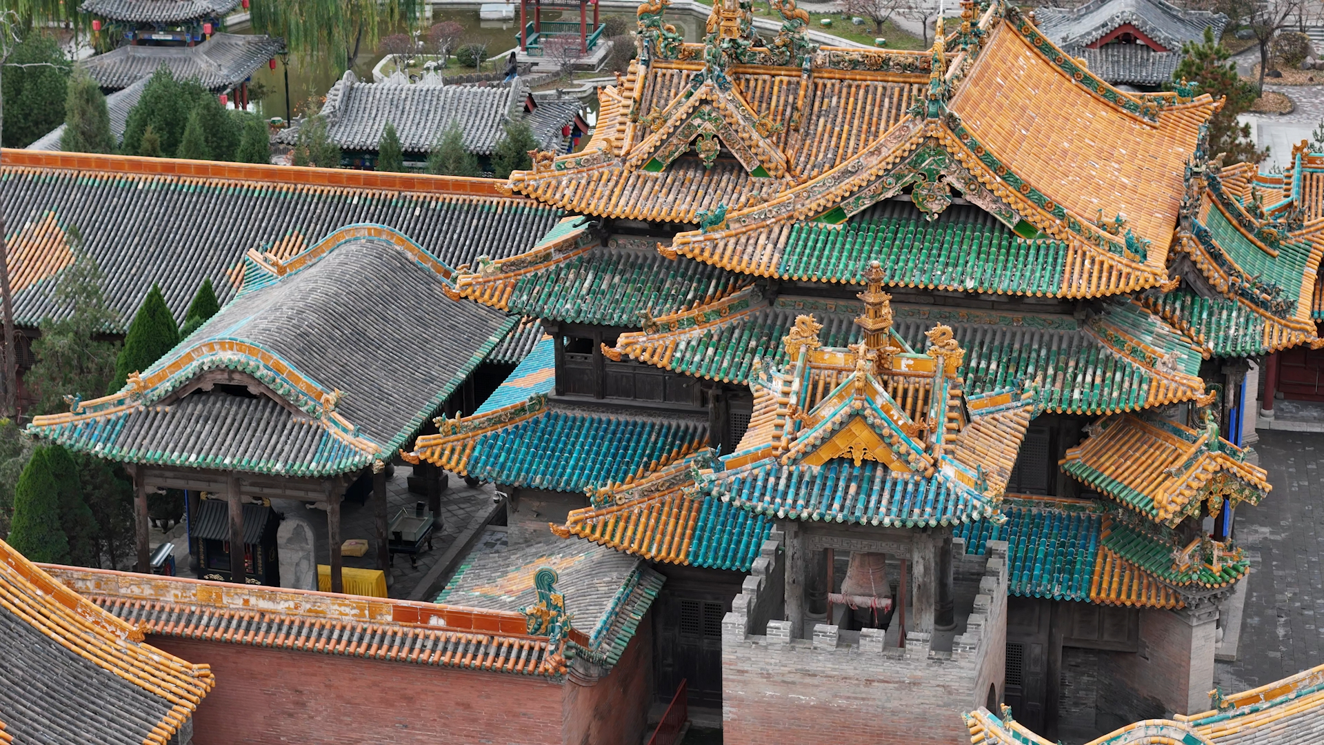 介休厚土廟用琉璃制作復(fù)雜的屋頂建筑。 澎湃新聞記者 王玨瑋 圖