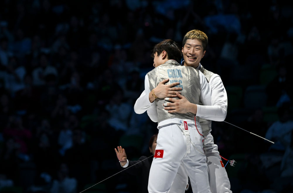 奧運冠軍張家朗領銜香港隊在男子花劍團體決賽中力克福建隊,斬獲香港隊史首枚全運會擊劍金牌?!澳茉谥鲌雠跗疬@枚沉甸甸的金牌,這份榮耀與喜悅難以言表!”張家朗難掩激動,“團隊同心是奪冠的關鍵,未來我們會繼續(xù)為香港爭光,為大灣區(qū)添彩。”