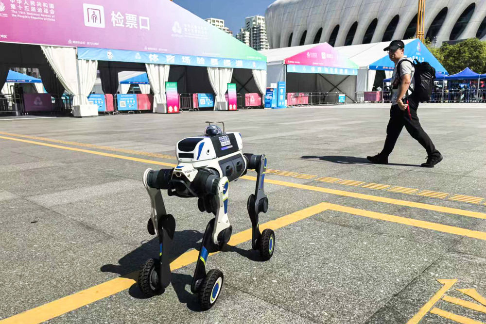 11月15日,深圳警方在場館附近使用“電子狼”警用巡邏機(jī)器人。