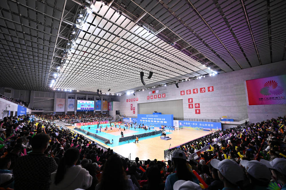 這是2025年11月20日拍攝的在廣東江門舉行的第十五屆全國運(yùn)動(dòng)會(huì)排球男子成年組冠亞軍決比賽現(xiàn)場。新華社記者 李鑫 攝