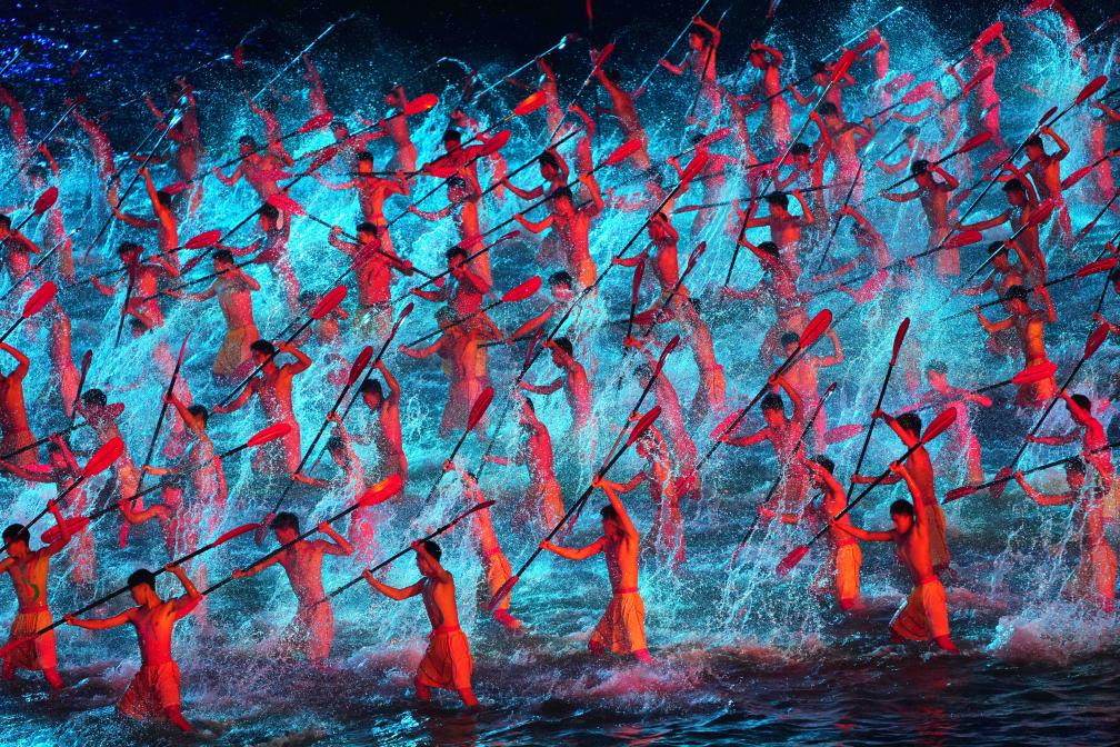 ↑11月9日,在第十五屆全國(guó)運(yùn)動(dòng)會(huì)開(kāi)幕式上,巨型鰲魚(yú)“游入”體育場(chǎng)上空。新華社記者 盧漢欣 攝