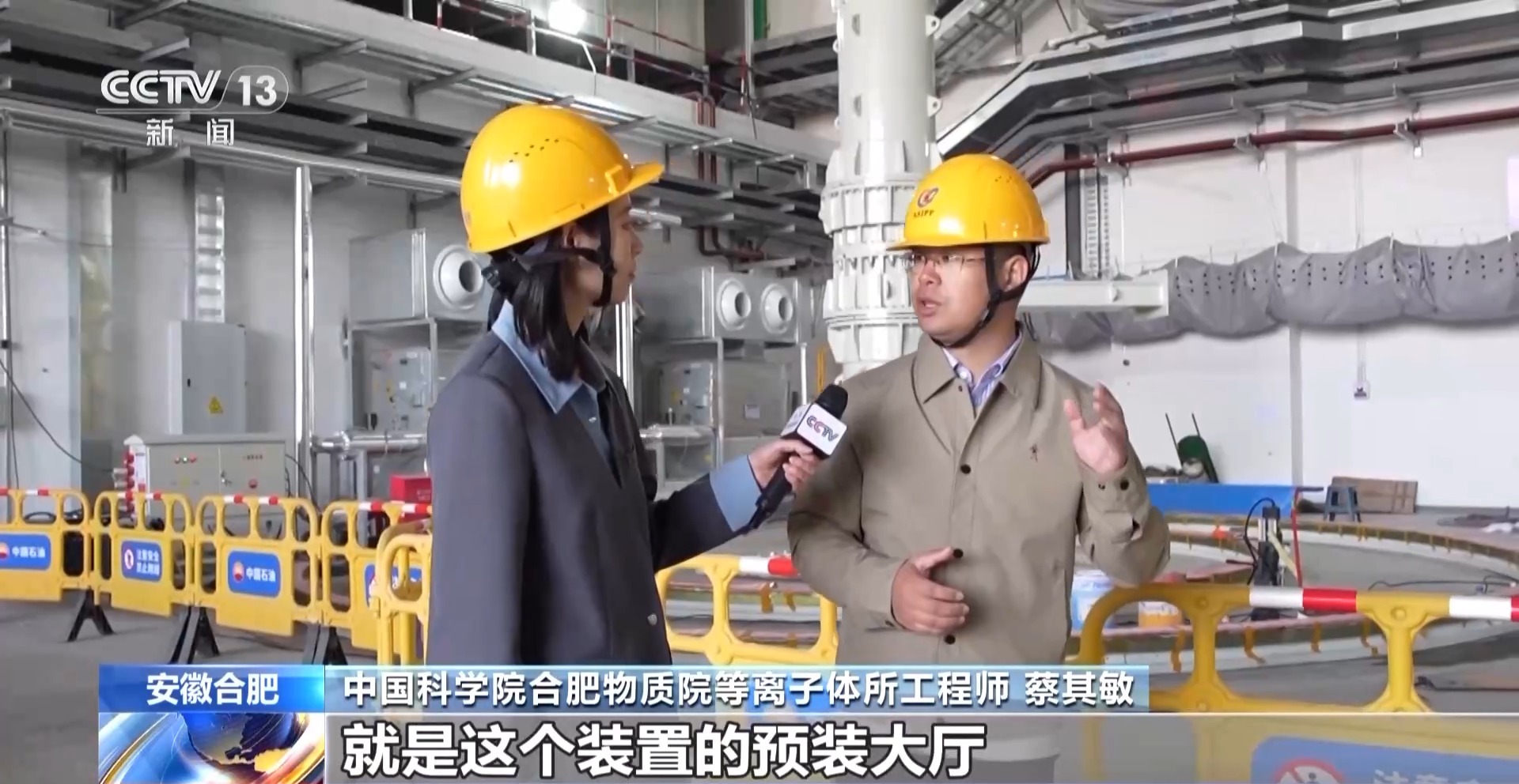 中國科學(xué)院合肥物質(zhì)院等離子體所工程師 蔡其敏:在“十四五”期間,合肥科學(xué)島的EAST(東方超環(huán))裝置上面突破了億度千秒大關(guān),推動(dòng)核聚變研究從基礎(chǔ)的實(shí)驗(yàn)領(lǐng)域轉(zhuǎn)向了工程化的建設(shè)。我們現(xiàn)在所處的位置就是這個(gè)裝置的預(yù)裝大廳,目前我們是在緊鑼密鼓地建設(shè)這個(gè)園區(qū)。
