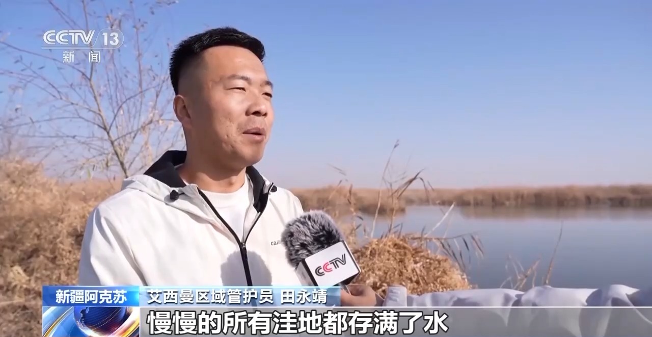 艾西曼區(qū)域管護(hù)員 田永靖:再生水過來之后,慢慢所有洼地都存滿了水,變成了現(xiàn)在所看到的濕地,這一大片的蘆葦現(xiàn)在長(zhǎng)勢(shì)都特別不錯(cuò)。