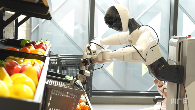 人形機器人在超市零售場景應(yīng)用訓練(央廣網(wǎng)記者鄧子依 攝)