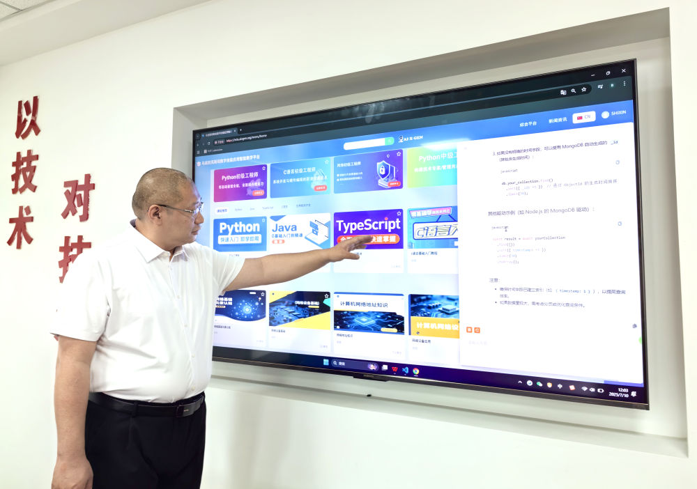 中科銳眼(天津)科技有限公司負責人介紹數字技能應用的“虛擬課堂”(石鑫 攝)