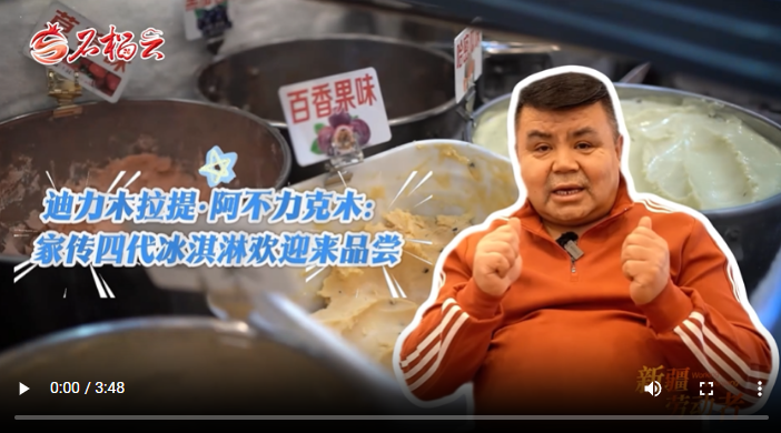 他爸爸還廣收徒弟,先后有266位疆內(nèi)外徒弟學(xué)成后自己開店、傳藝。能讓更多人品到美味,迪力木拉提是開心的。更讓他開心的是當(dāng)?shù)厝思案鞯赜慰蛯λ冶苛艿暮駩??!拔矣袝r候這樣想,如果我的顧客回家的時候,能想起我家的冰淇淋,再能想起我來,我就特別開心?!钡狭δ纠嵴f。