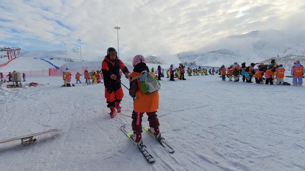 “雪假首日熱度堪比每年春節(jié)高峰期?!睂④娚交W院校長李霞介紹,當日上午就有來自阿勒泰地區(qū)各縣市、烏魯木齊的千名青少年前來滑雪。