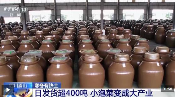 眉山“中國泡菜城”管委會經(jīng)濟發(fā)展局局長 胡春福:我們專門從原料、技術和企業(yè)三個方面出臺了相關的文件和幫扶措施,通過“企業(yè)+合作社+農戶”模式,帶動了12萬農戶人均年增收1.3萬元。目前全市泡菜全產(chǎn)業(yè)鏈產(chǎn)值已經(jīng)達到220億元。