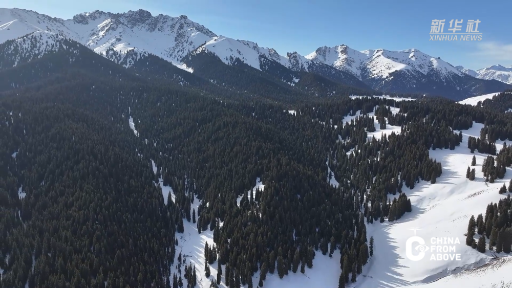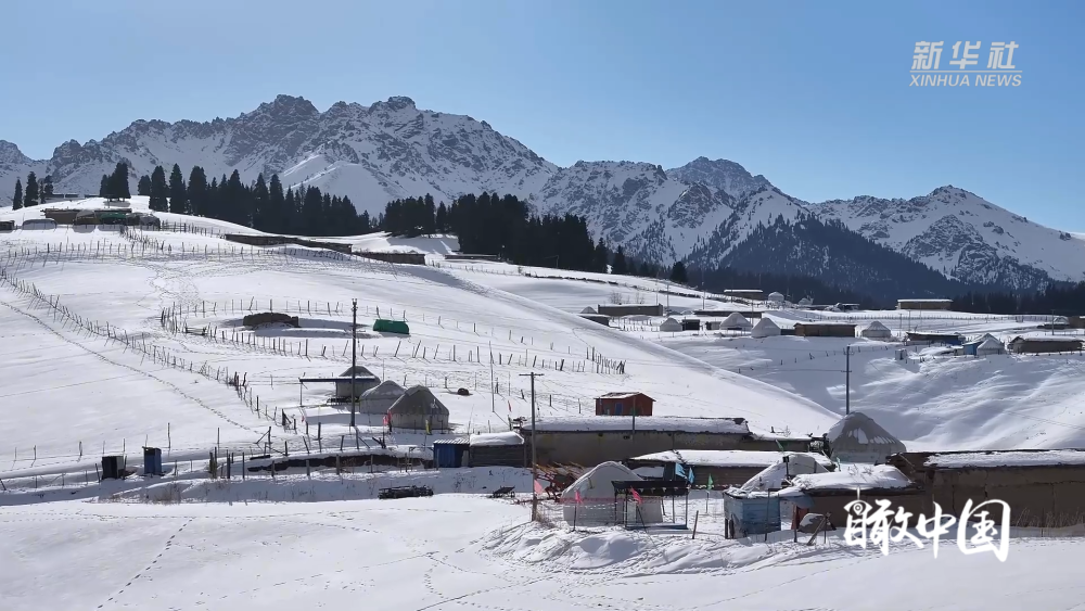 連綿的山巒披上了潔白的盛裝,峰巒疊嶂間,雪色如紗漫卷;層疊的田地靜臥于皚皚白雪之下,似千里素絹鋪展,盡顯大地的遼遠(yuǎn)與柔美。無垠雪野中,馬兒悠然覓食,與遠(yuǎn)處蒼勁的松林相映成趣。每一處風(fēng)景都藏著江布拉克獨(dú)有的浪漫,共同勾勒出一幅靈動(dòng)而靜謐的冬日畫卷。