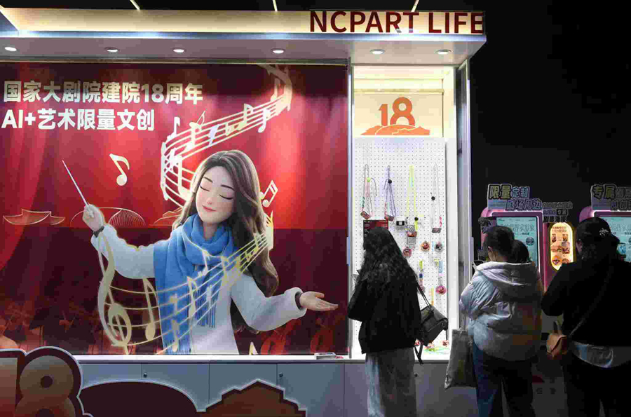 圖為觀眾在國家大劇院選購文創(chuàng)產品。新華社記者 羅曉光 攝