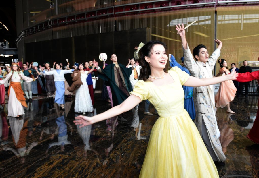 圖為演員在國家大劇院公共空間與觀眾互動。新華社記者 羅曉光 攝