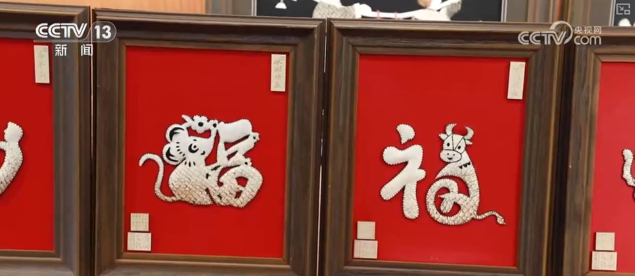 與江南魚燈相映成趣的,是扎根黑土地的吉林省級非遺——查干湖魚皮制作技藝。在“禮遇吉林”非遺體驗店,魚皮經(jīng)洗料、鞣制、剪刻、拼貼等工序,變身充滿民族風情的精美藝術品。