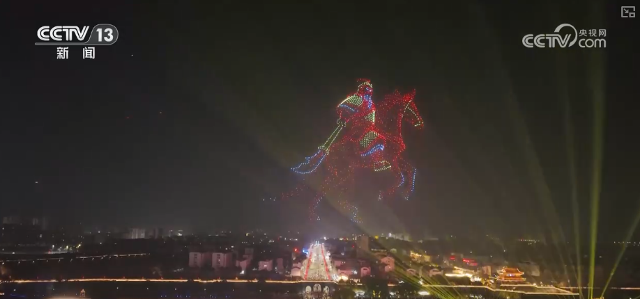在荊州古城,2026架無人機翩然升起,以天為幕,勾勒出一幅幅絢麗的光影畫卷。鳳凰展翅,象征楚文化的涅槃與高遠;赤兔騰空,呼應關羽的忠誠與神勇;關公橫刀立馬的雄姿,在夜空中凝結(jié)為璀璨祝福。整座古城流光溢彩、光影交錯,展現(xiàn)出一幅古今交融的文旅新畫卷。