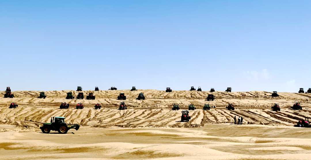 于田縣結合沙丘地形特點,將20米至40米高的高大沙丘分段平整為“梯田”,在沙丘頂部種植喬灌草,斜坡處鋪設草方格,沙丘底部栽種梭梭、紅柳、酸棗等固沙植物。該縣創(chuàng)新探索的“梯田治沙”模式,相較以往將沙丘整體平整后再種植防沙作物的方式,成本降低約80%。