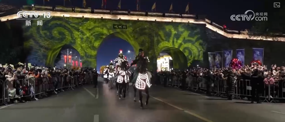 更有2026架無人機(jī)騰空而起,勾勒出“萬馬奔騰”“鳳凰展翅”光影長卷,讓游客驚嘆。還有為古城墻披上斑斕外衣的荊風(fēng)楚韻燈光秀,讓大家賞心悅目。光影流轉(zhuǎn)間,放佛歷史與現(xiàn)代隔空對話。