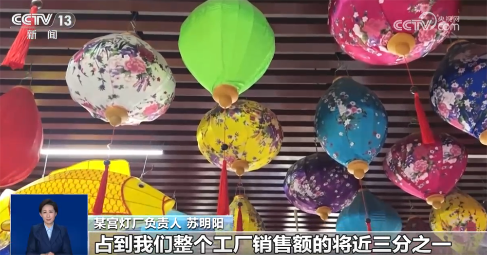 某宮燈廠負(fù)責(zé)人 蘇明陽:現(xiàn)在一天直播4小時(shí)—5小時(shí),到年底我們一天開播將近16個(gè)小時(shí)。在線上賣,占到我們整個(gè)工廠銷售額的將近三分之一。