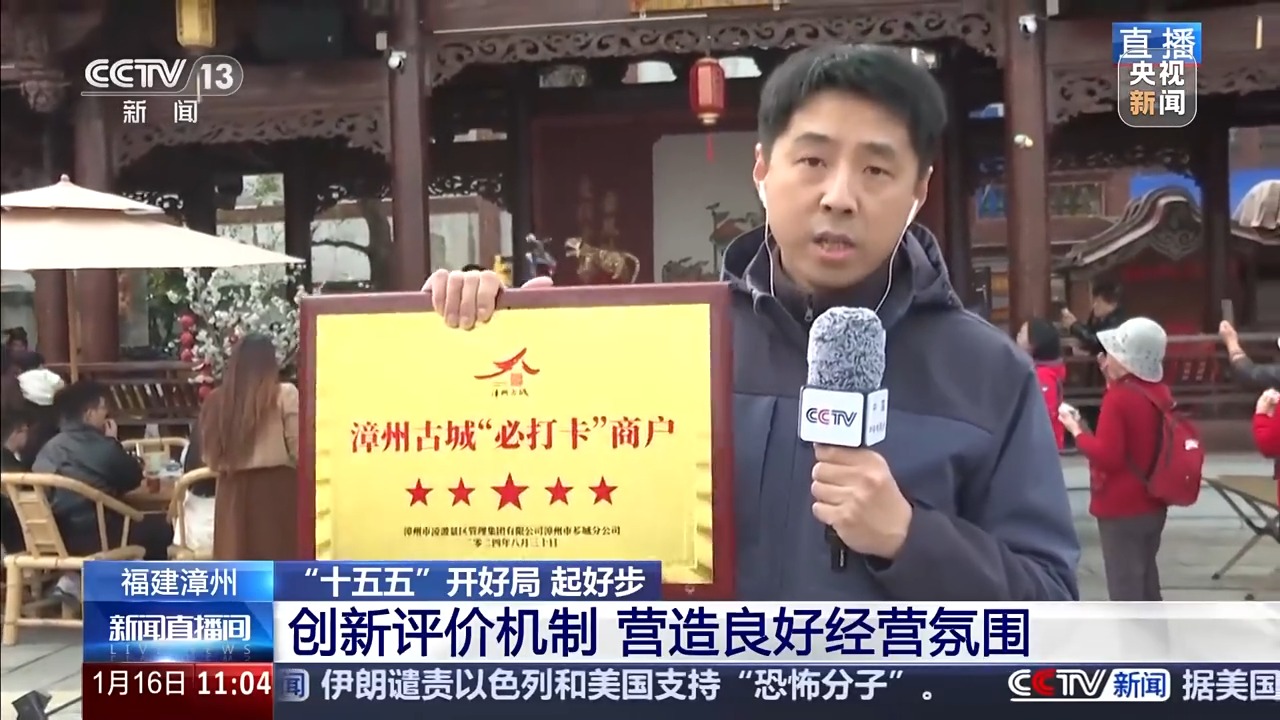 此外,我們還注意到一個細(xì)節(jié)。這里有一些商家,獲得了這樣一種帶有星級評價的獎牌。這是漳州古城聯(lián)合了當(dāng)?shù)匚穆?、商?wù)、市場監(jiān)管等部門共同授予。目前,當(dāng)?shù)叵嚓P(guān)部門每兩年都會對古城內(nèi)的商戶開展文明誠信經(jīng)營示范評選,經(jīng)過線上投票、現(xiàn)場考察、線下評分等環(huán)節(jié),上榜單位將得到漳州當(dāng)?shù)赜杏绊懥Φ墓娞枴⒁曨l號等的推廣支持,不僅讓精品商鋪能夠出圈,提升古城的游客流量,也激勵其他商戶,來共同營造良好的經(jīng)營氛圍。