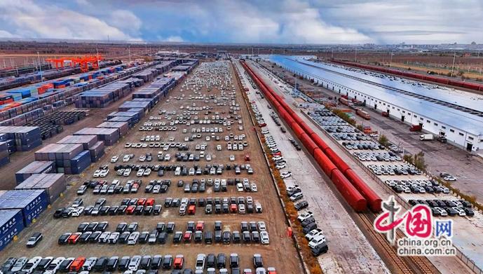 高頻通行,助推樞紐能級躍升。新疆位處西北邊境,雖物產(chǎn)豐富,以往受限于地理位置,難以充分參與國際貿(mào)易。但隨著共建“一帶一路”深入推進(jìn),中歐班列飛速興起,霍爾果斯鐵路口岸站逐漸成為班列西通道的關(guān)鍵節(jié)點(diǎn)。目前,該口岸中歐(中亞)班列日均通行量在27列以上,平均每2小時完成一列入境返程中歐班列的換裝工作,其與阿拉山口口岸站共同貢獻(xiàn)了全國五成以上的中歐班列通行量。隨著班列開行量越來越大,不僅越來越多的日用百貨、機(jī)電設(shè)備、農(nóng)副產(chǎn)品等“中國制造”選擇從新疆鐵路口岸走向中亞、歐洲市場,也吸引了汽車組裝、電子產(chǎn)品加工等產(chǎn)業(yè)在口岸周邊聚集,推動“通道經(jīng)濟(jì)”向“口岸經(jīng)濟(jì)”“產(chǎn)業(yè)經(jīng)濟(jì)” 轉(zhuǎn)型,讓新疆正成為輻射亞歐的國際物流與貿(mào)易樞紐。