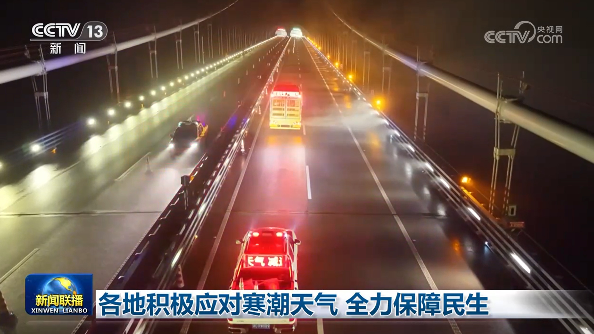 昨夜(1月19日)今晨,湖北、湖南、安徽、江蘇、上海等地相繼出現(xiàn)雨雪天氣。目前,湖北公安交管等部門出動警力4萬多人次,投入掃雪除冰作業(yè)人員超1萬人,機(jī)械2300多臺,全力保障出行安全。江蘇今天升級發(fā)布道路結(jié)冰橙色預(yù)警,全省多地在交通重點路段和場所連夜開展掃雪除冰工作。今天,湖南發(fā)布低溫雨雪冰凍黃色預(yù)警,從昨晚開始,G65包茂高速矮寨大橋道路出現(xiàn)覆冰,工作人員實行輪班值守,連續(xù)啟用熱風(fēng)吹雪車作業(yè),確保大橋正常通行。積極應(yīng)對持續(xù)低溫天氣,安徽已累計投入農(nóng)技人員近57000人次,指導(dǎo)農(nóng)戶對超2300萬畝農(nóng)田做好防凍抗逆措施。內(nèi)蒙古多地幫助牧民加固圈舍、調(diào)配飼料,持續(xù)做好牛羊安全過冬工作。