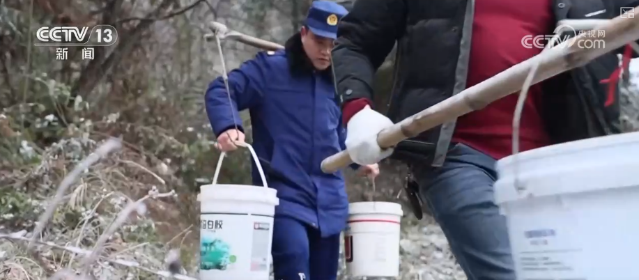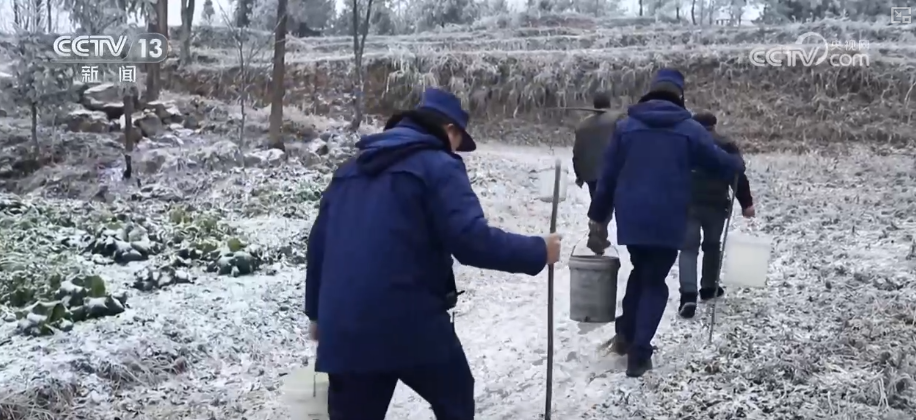 自1月19日出現(xiàn)低溫天氣以來,印江縣沙子坡鎮(zhèn)天星村已被冰雪覆蓋兩天,最低氣溫降至-5℃。該村16個村民組均位于海拔900米以上的山區(qū),日常生活用水依靠36口水池集中供應(yīng)。持續(xù)低溫導(dǎo)致通往村民家的供水管道凍結(jié),同時村內(nèi)道路結(jié)冰,村民生活用水受到影響。得知這一情況后,當(dāng)?shù)劓?zhèn)村干部與消防站人員迅速組成抗凝凍應(yīng)急隊,前往水池取水并挑送至村民家中。