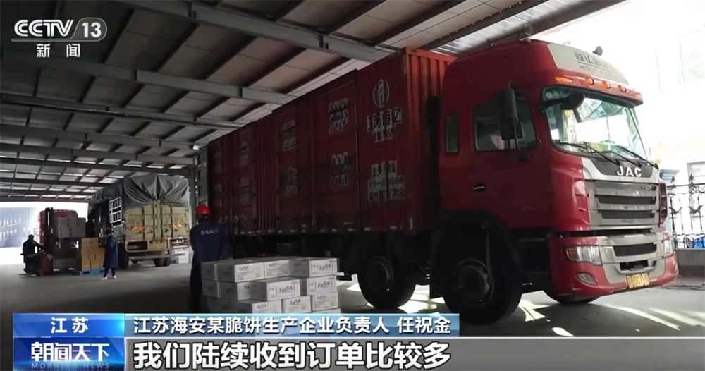 江蘇海安某脆餅生產(chǎn)企業(yè)負責(zé)人 任祝金:我們陸續(xù)收到訂單比較多,要忙到臘月十五左右。