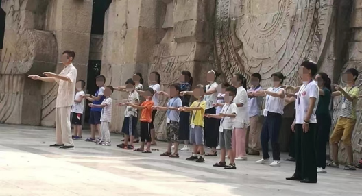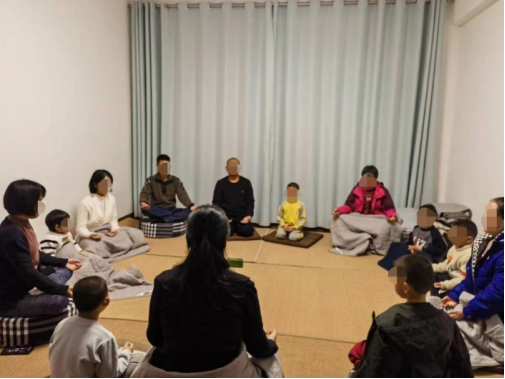 家長(zhǎng)帶著孩子參加“乾源文化”打坐練功