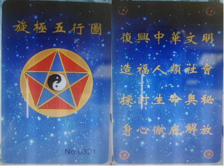 “乾源文化”非法組織銷售的“旋極五行”圖卡,聲稱此卡“具有宇宙能量”,可以幫助學(xué)員提升自我