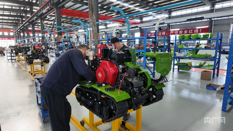 達(dá)州丘陵山區(qū)現(xiàn)代農(nóng)林裝備專(zhuān)業(yè)園區(qū)的生產(chǎn)線上,工人們正在組裝農(nóng)機(jī)裝備(央廣網(wǎng)記者 昌思榮 攝)
