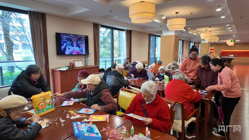 崇州青城山下的一家頤養(yǎng)中心內(nèi),老人們正在畫(huà)畫(huà)、做手工(央廣網(wǎng)記者 昌思榮 攝)