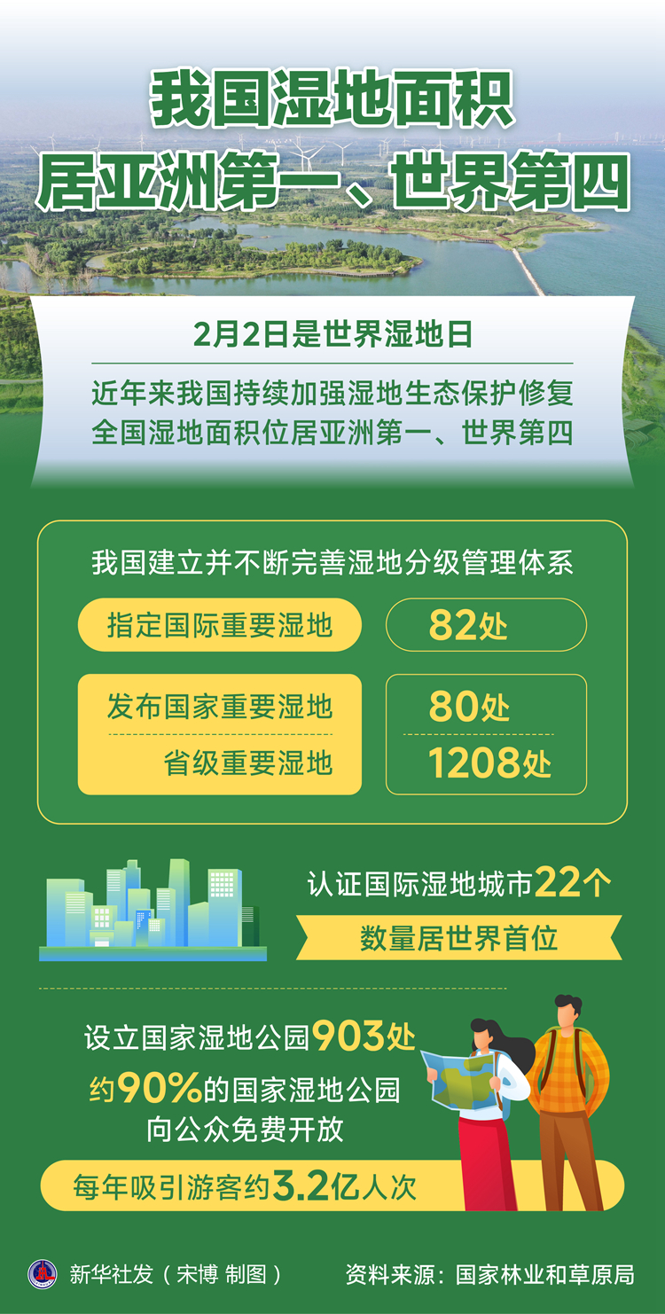 2月2日是世界濕地日。記者當(dāng)天從國(guó)家林業(yè)和草原局獲悉,近年來(lái)我國(guó)持續(xù)加強(qiáng)濕地生態(tài)保護(hù)修復(fù),全國(guó)濕地面積位居亞洲第一、世界第四,濕地保護(hù)形成重點(diǎn)治理和分類保護(hù)相結(jié)合的新格局。