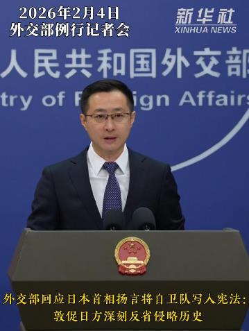 日本首相高市早苗近日在演講時聲稱有意將自衛(wèi)隊寫入憲法。對此,外交部發(fā)言人林劍4日在例行記者會上表示,我們注意到了上述消息。二戰(zhàn)期間,日本軍國主義給地區(qū)和世界帶來了深重的災難?!堕_羅宣言》《波茨坦公告》和《日本投降書》等具有國際法效力的文件,明確了日本作為戰(zhàn)敗國的國際義務,這也是日本重返國際社會的政治和法律前提。