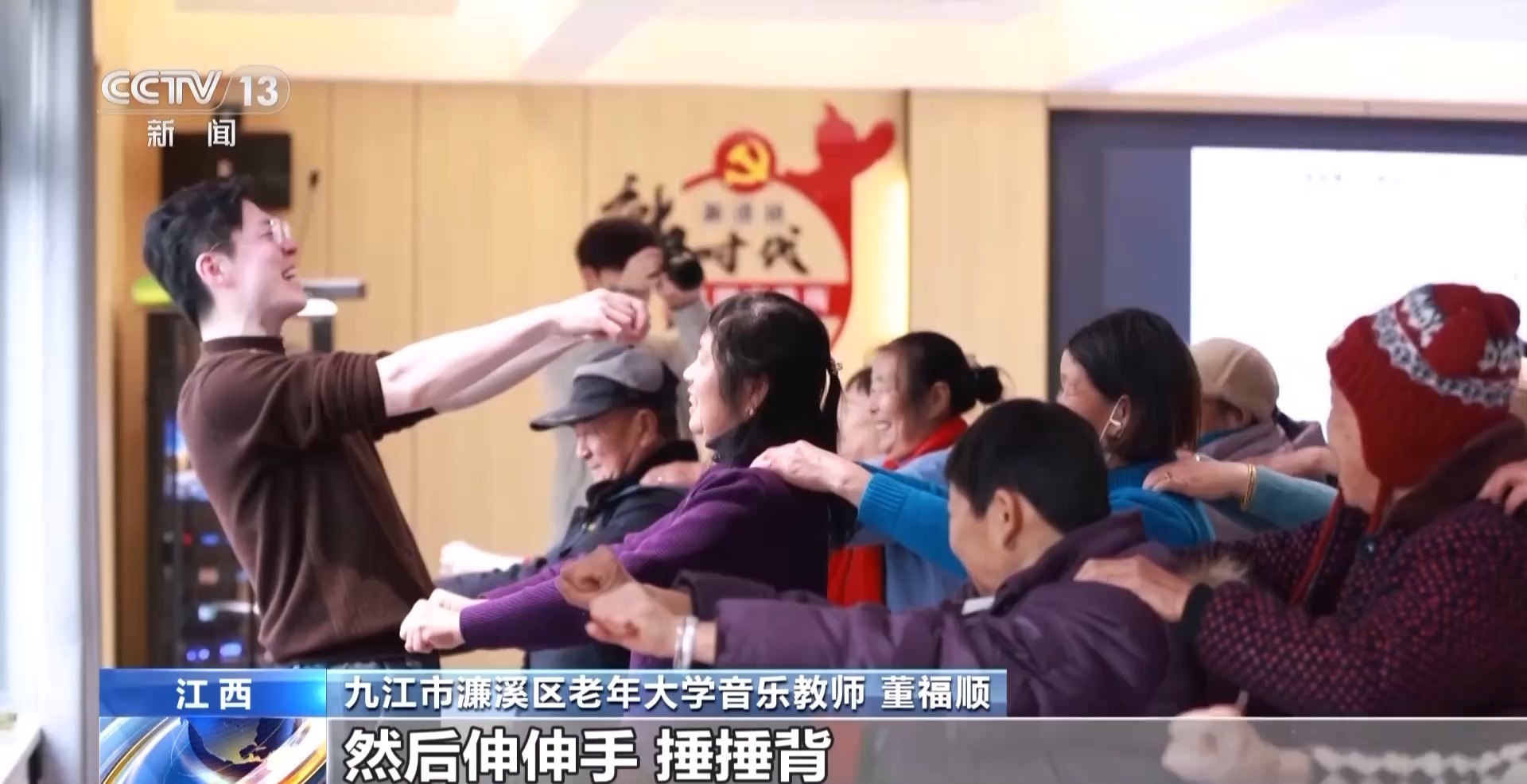 九江市濂溪區(qū)老年大學音樂教師 董福順:我覺得音樂它是有律動的,結(jié)合那個律動再加這些動作,然后伸伸手、捶捶背,我覺得這不就是生活中的動作,你把它再帶到課堂里邊兒,帶到音樂里邊兒,課堂就不一樣。