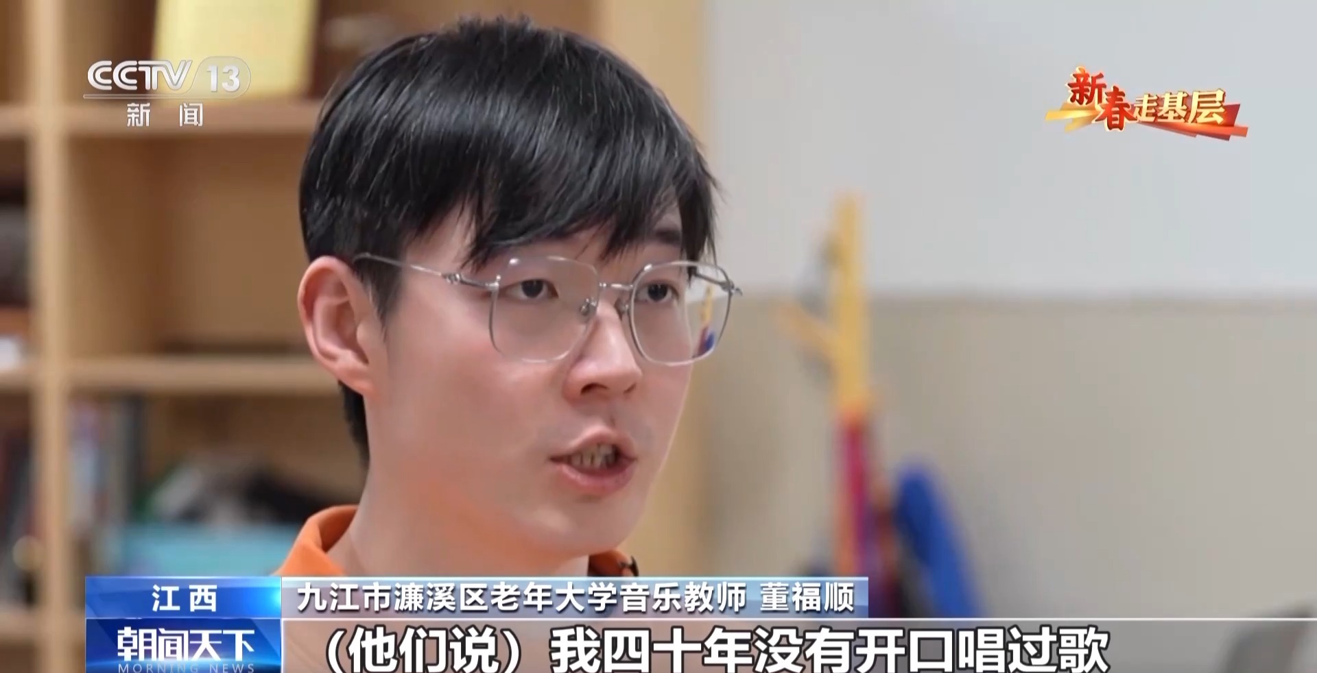 九江市濂溪區(qū)老年大學音樂教師 董福順:我去了之后,他們說我四十年沒有開口唱過歌,已經(jīng)很久很久,他們說都快忘了這首歌的歌詞了,你過來了,讓我想起了它。所以我覺得我又一次被認可了,我也覺得是他們在給我一點能量,當看著他們唱回憶起的這些歌曲的時候,他們坐直了,開始朝我揮手去唱,我覺得這件事做對了。