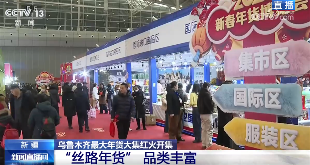 在烏魯木齊市年貨大集的現(xiàn)場,大家可以看到,采購年貨的市民非常多。這個(gè)大集面積達(dá)1.4萬平方米,攤位數(shù)量超過400家,產(chǎn)品種類也特別豐富。