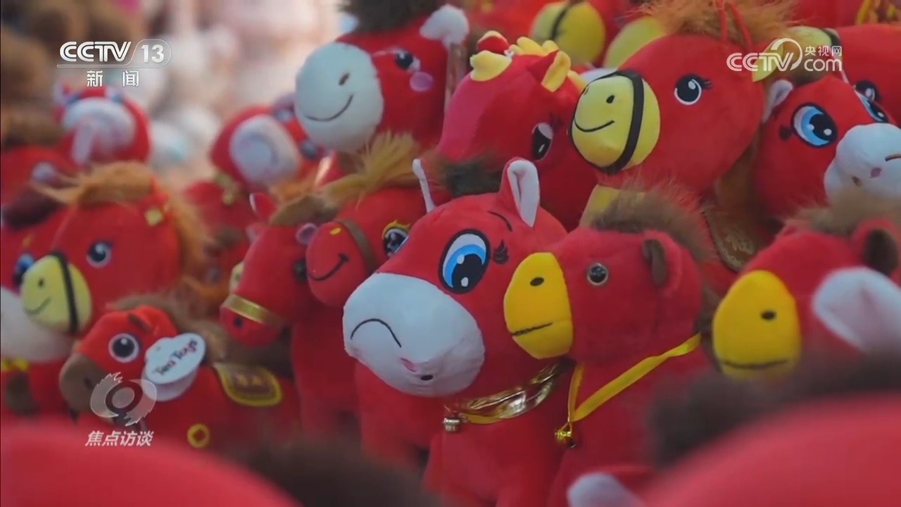 近年來(lái),生肖文化、非遺主題的文創(chuàng)成為了新的過(guò)年硬通貨,給孩子帶上兩個(gè)馬年玩偶也是今年的潮流。在浙江義烏,今年春節(jié)年貨市場(chǎng)里,生肖經(jīng)濟(jì)日益火熱使得一款“哭哭馬”玩偶意外走紅??p反嘴的“錯(cuò)版小馬”委屈的表情不但沒(méi)有被消費(fèi)者嫌棄,反而因?yàn)樘峁┝霜?dú)特的情緒價(jià)值,很快就成了爆款。
