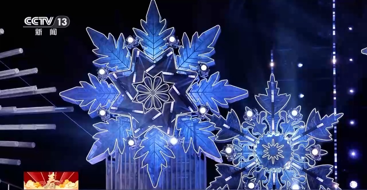 總臺(tái)《2026年春節(jié)聯(lián)歡晚會(huì)》哈爾濱分會(huì)場(chǎng)制片主任 曹天抒:有十朵雪花,每個(gè)雪花都是用特殊的一種鋼網(wǎng)的材質(zhì),做出來(lái)晶瑩剔透的效果。這個(gè)冰的制作,我們也花了很多心思。所以我們?cè)谥票^(guò)程當(dāng)中,加了一種白色的染料,讓它更好地作為一個(gè)介質(zhì)來(lái)反映投影,出現(xiàn)一個(gè)夢(mèng)幻的、清楚的效果。