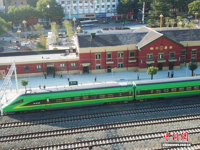 圖為綠巨人動車組駛進銅川東站。(資料圖)趙宏亮 攝